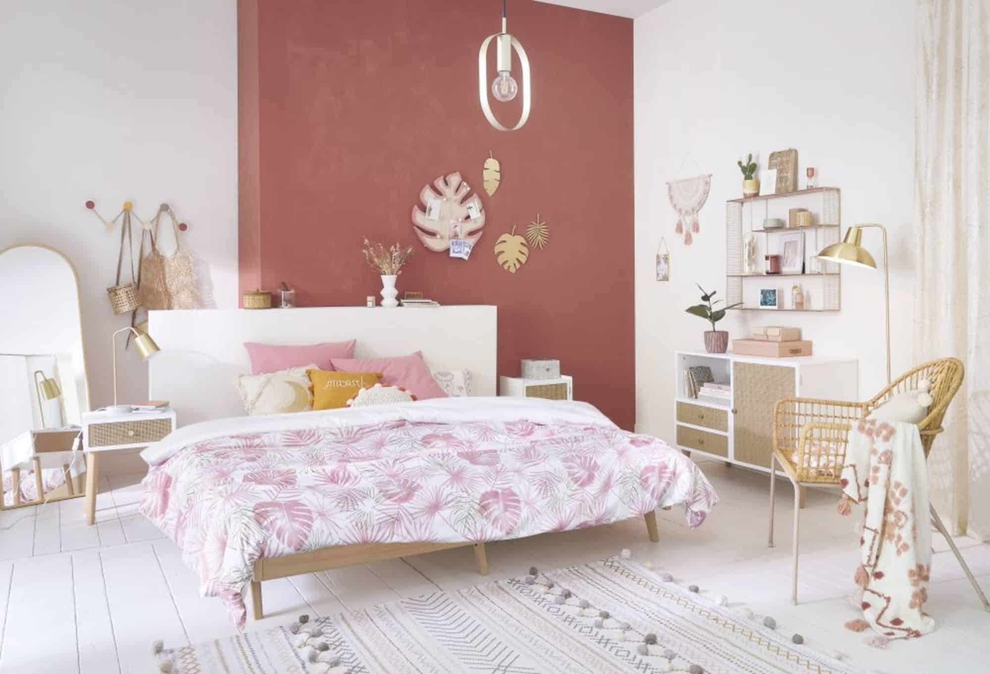 Utiliser le vieux rose en décoration textile est l’un des moyens les plus sûrs de mettre en valeur la couleur. Des plaids, des coussins, des couvertures de lit ou des rideaux aux motifs en vieux rose ; ça paraît très discret ! Et pourtant, ça rajoute une touche particulière et conviviale à la pièce.